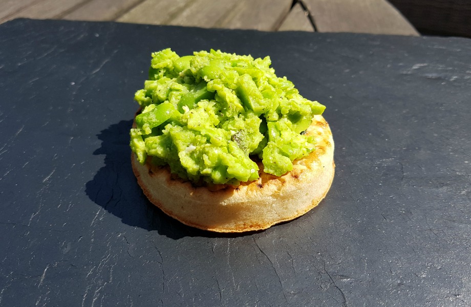 Crumpets with Broad Bean Bash